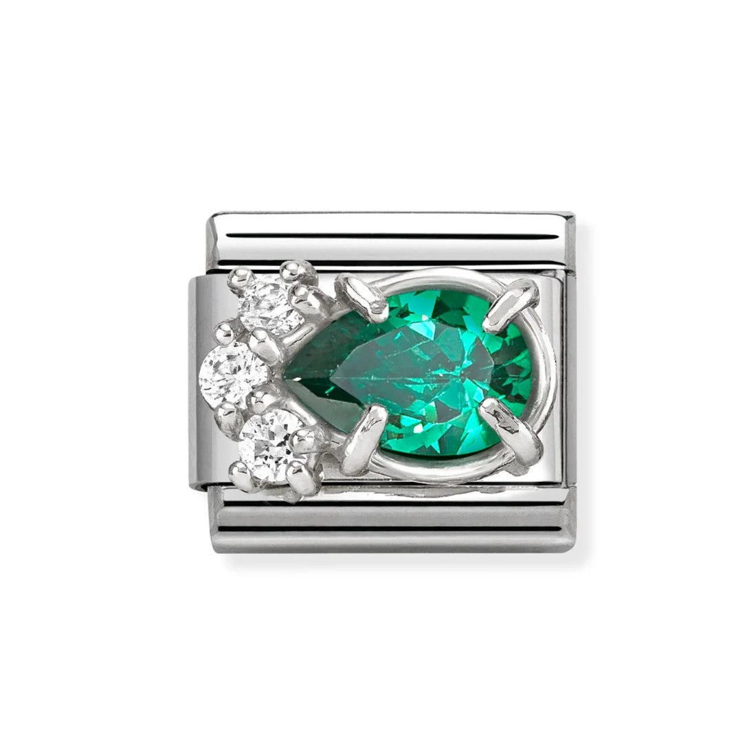 Composable Classic Steel Charm With Oval Turquoise In Natural Stone & In 925 Silver