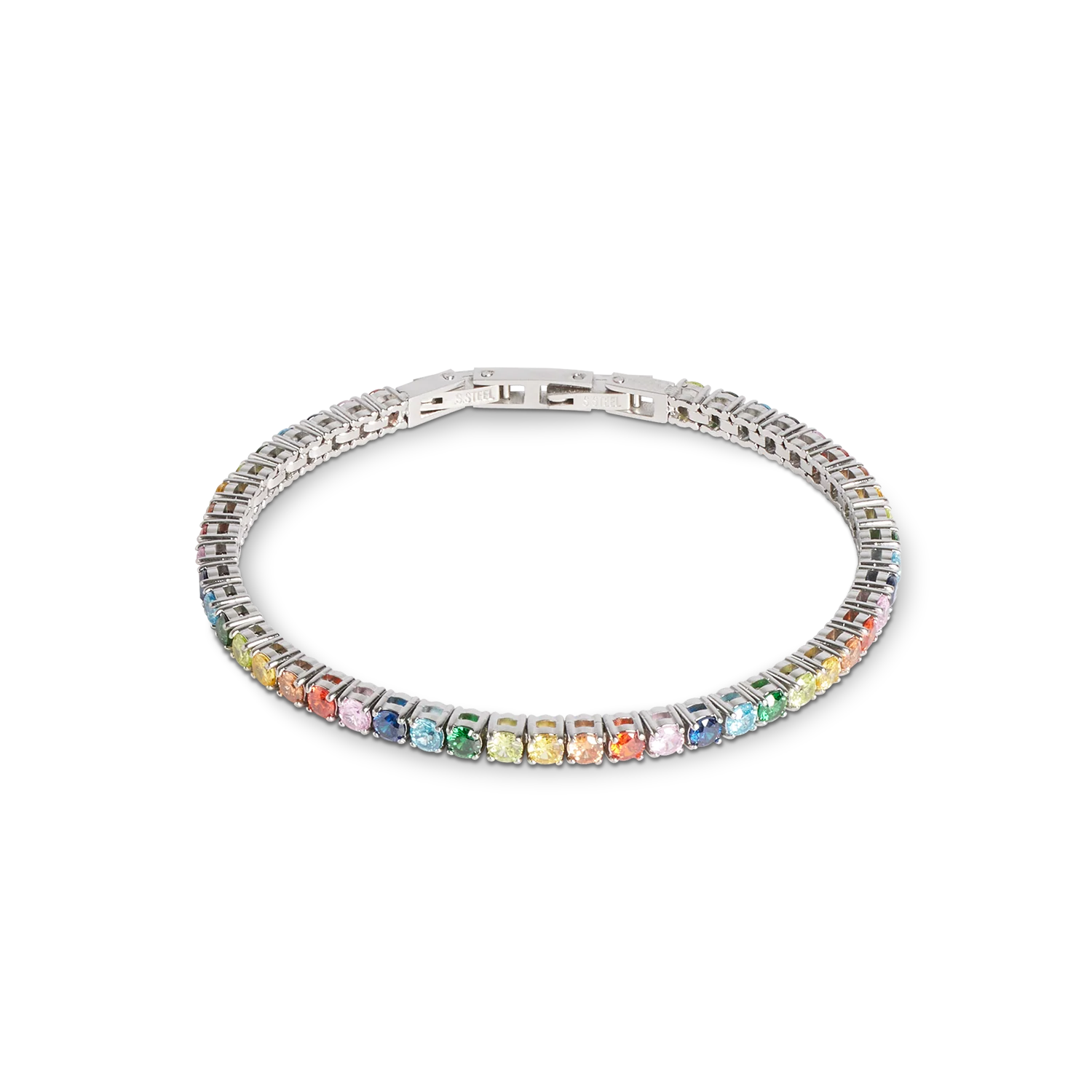 Tennis Multicolour CZ Silver Bracelet