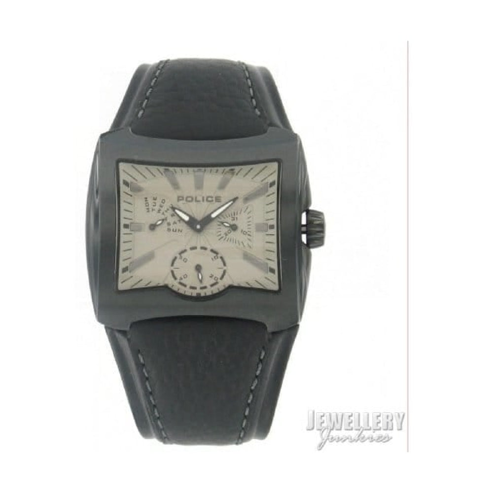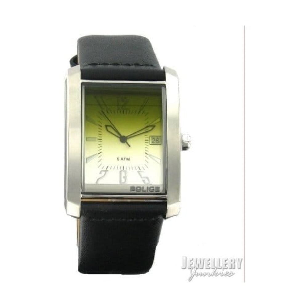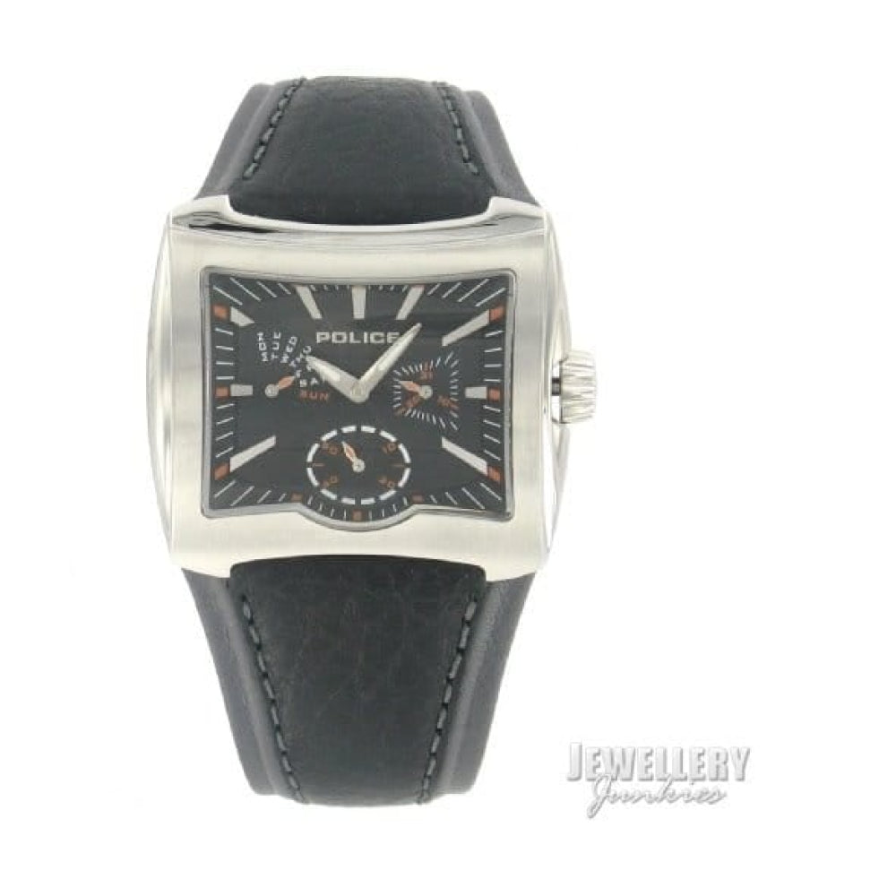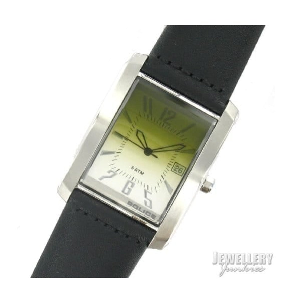 Silver Dial And Black Leather Strap Mens Police Wristwatch
