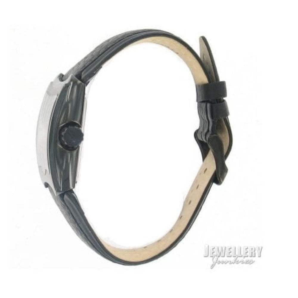Black IP Case With Black Dial & Leather Strap EDGE Gents Watch