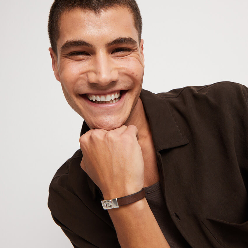 - Brown Leather Bracelet With Silver Plated Clasp