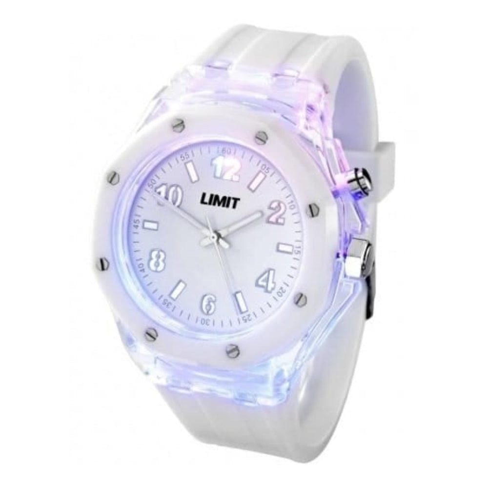 - Gents Strobe White Rubber Watch With Light Effect