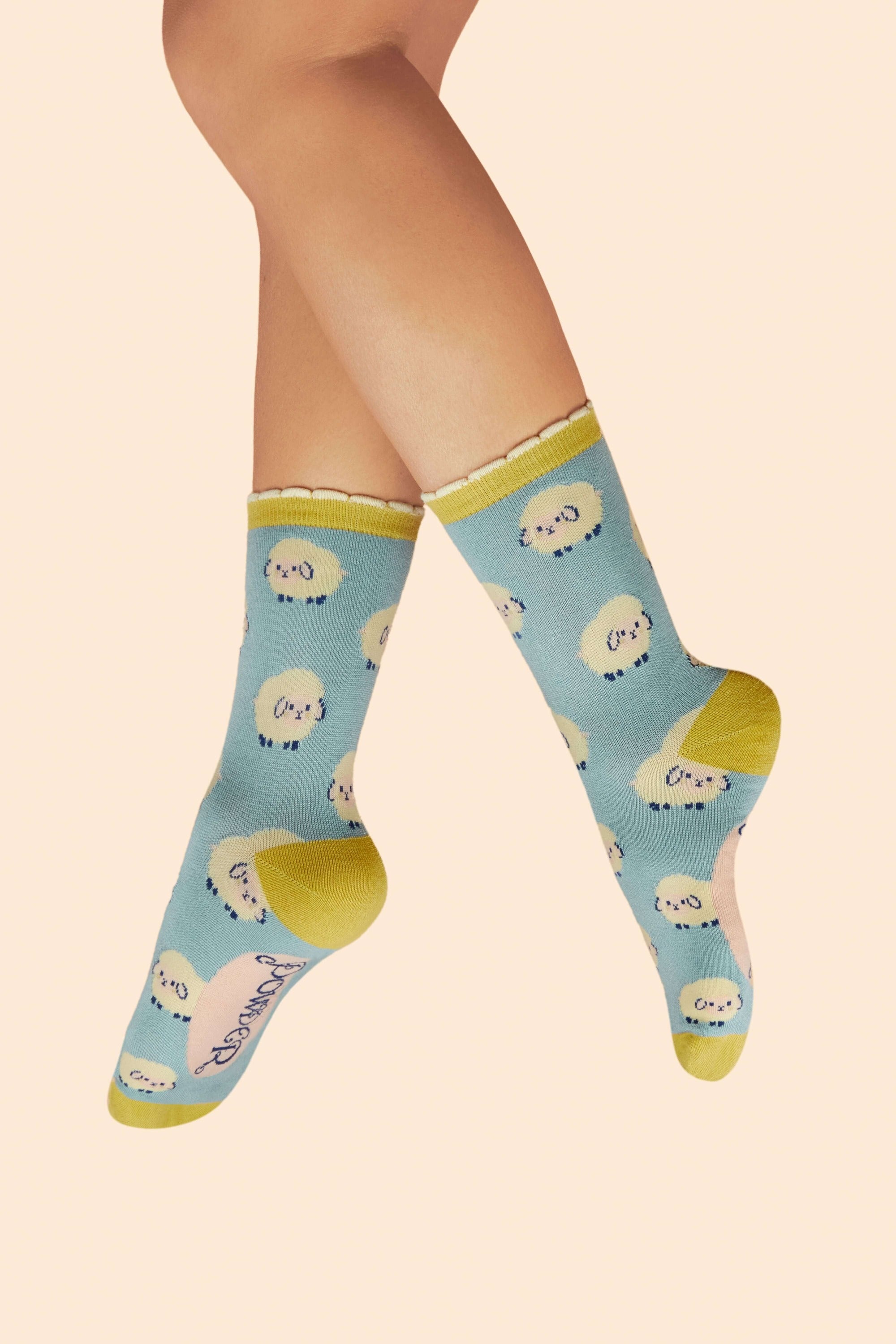 - Marshmallow Sheep Ladies Ankle Socks - Ice Blue