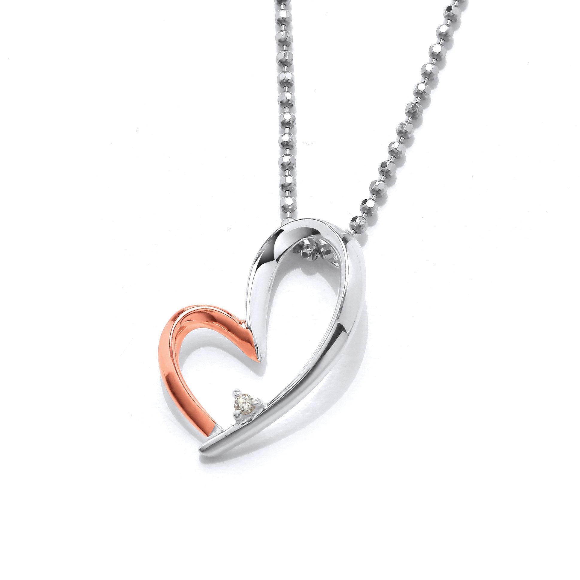 - Silver & Rose Gold Offset Heart Pendant & Chain