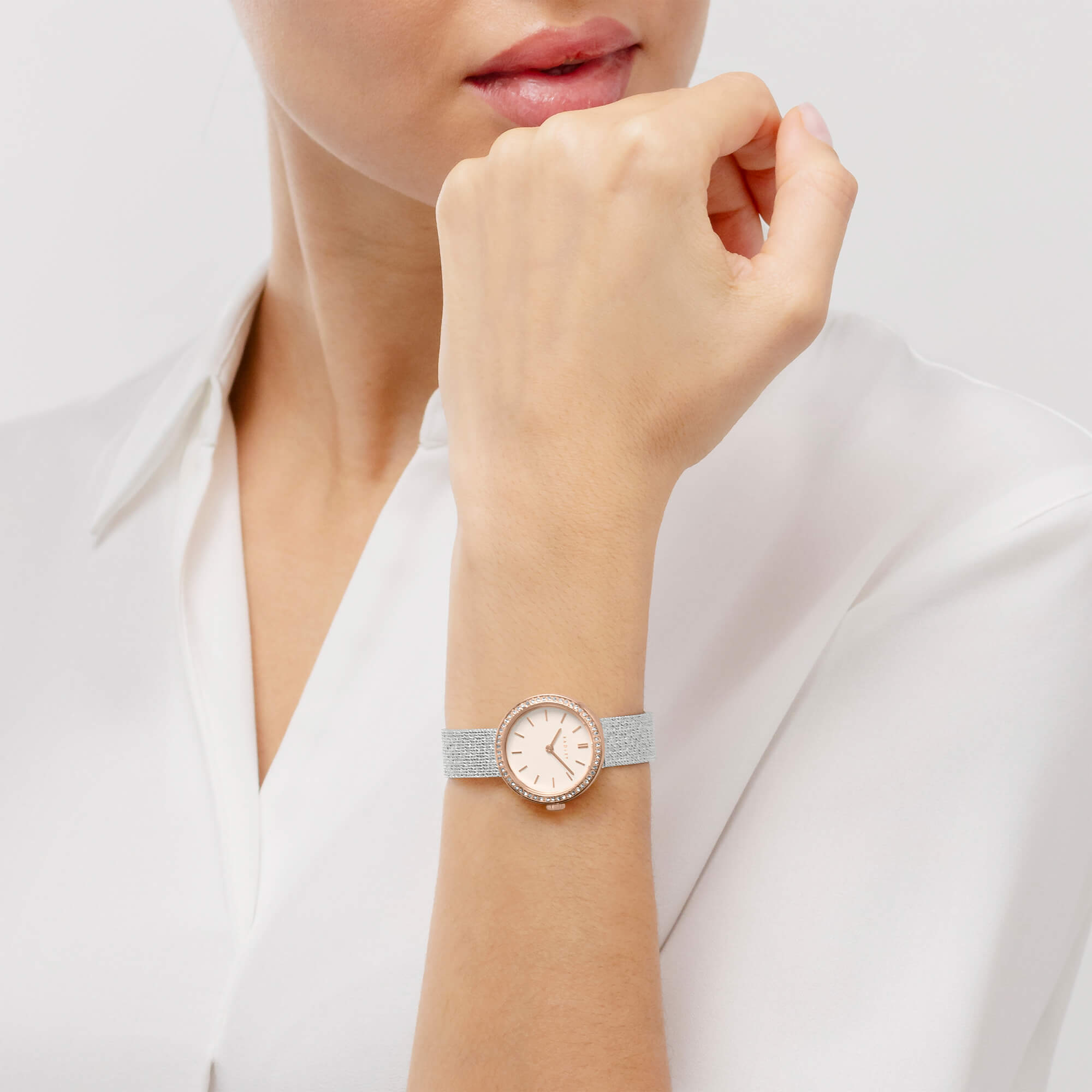 - Silver & Rose Gold Plated 27mm Stone Set Mesh Watch